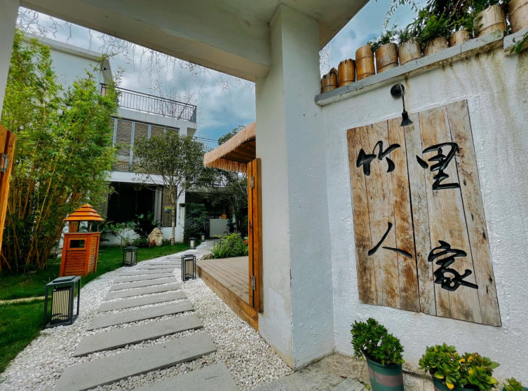 風(fēng)穿過竹林簌簌作響,空氣里是門前的水流帶來的清冽。竹里人家位于竹里巷子,是一方寧靜之地。在這里,竹木、花草相映成趣,環(huán)境優(yōu)美,生態(tài)獨具一格。色調(diào)合宜、細節(jié)到位的裝修,透出素雅的品味。